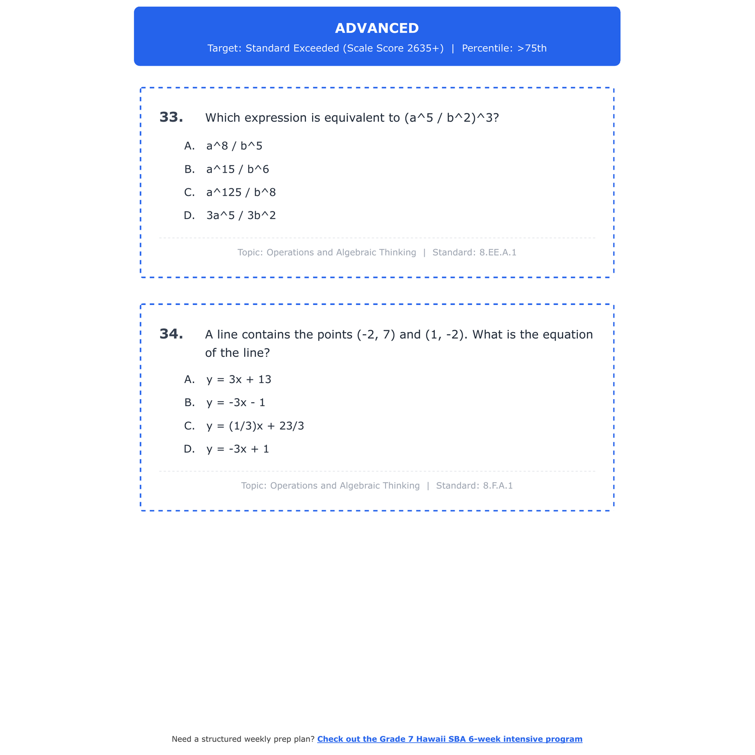 [Grade 8] Hawaii SBA Math | 6-Week Prep | All 4 Levels (Scale Score 2504-2653+)