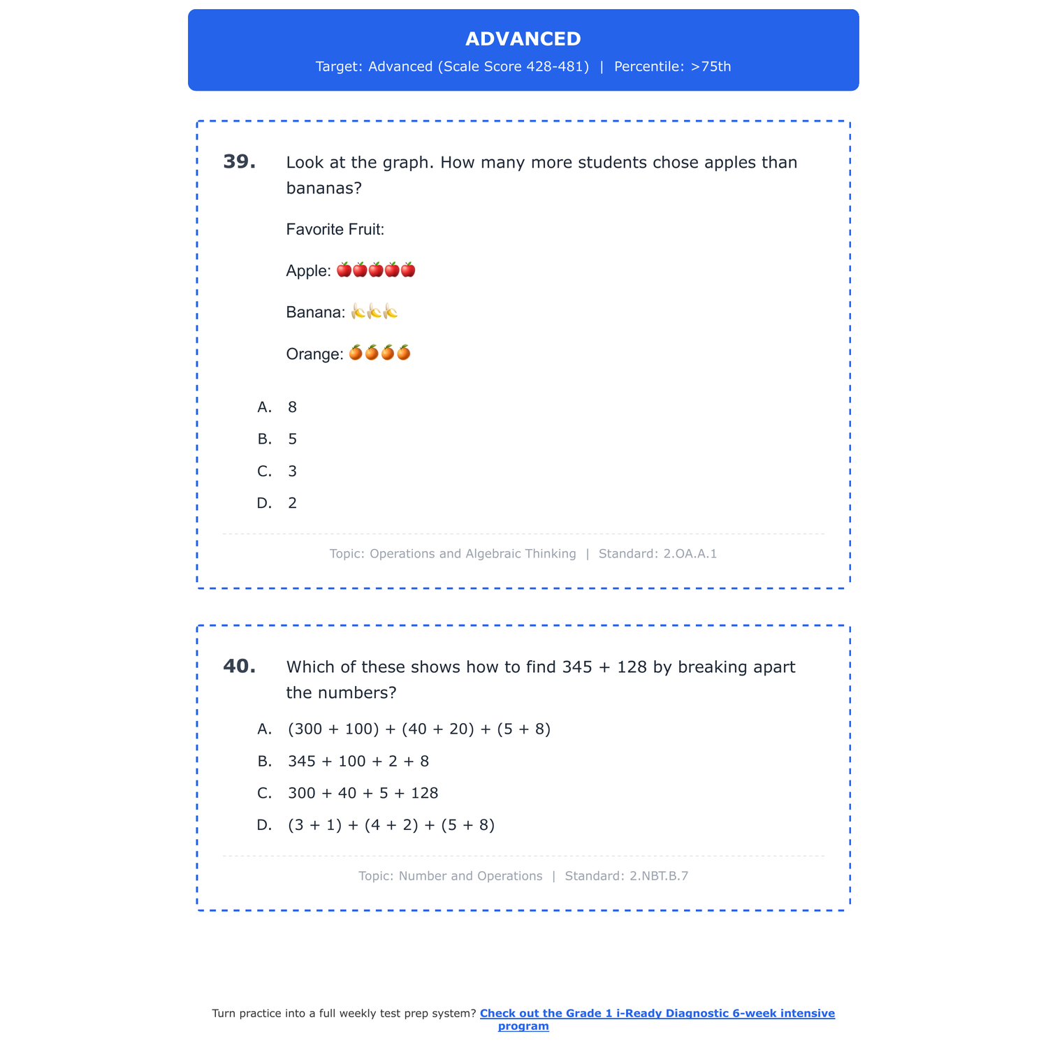 - A PDF with 40 unique math questions inspired by the i-Ready Diagnostic test