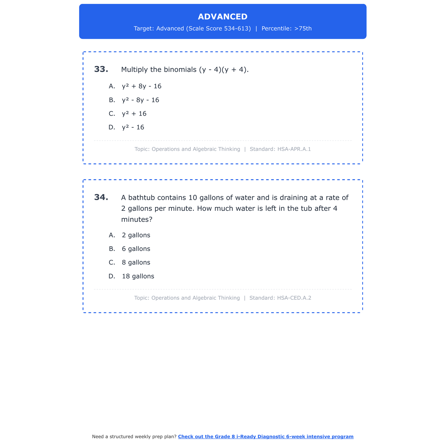 [Grade 8] i-Ready Diagnostic Math | 6-Week Test Prep | Scale Score 444-613