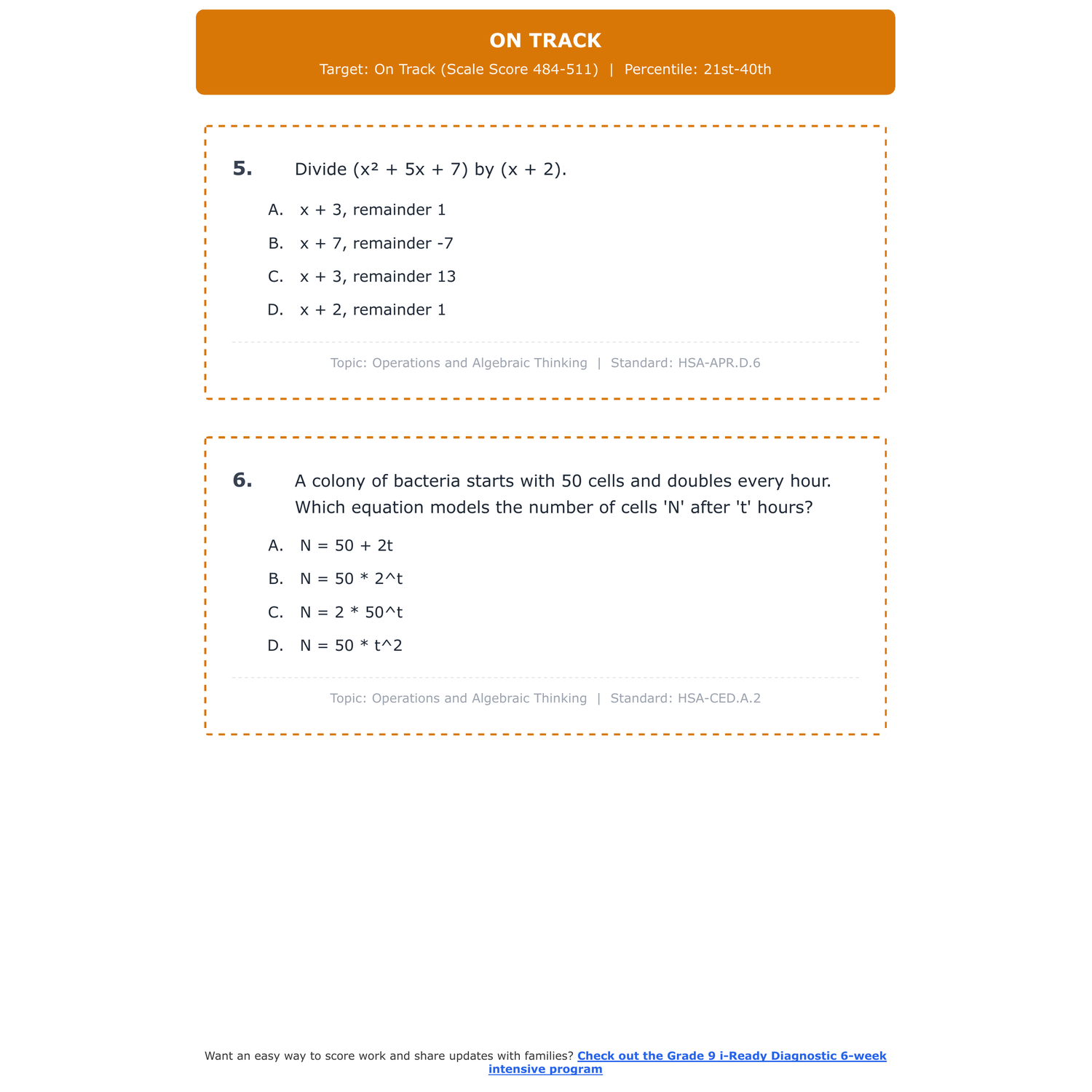 [Grade 9] i-Ready Diagnostic Math | 6-Week Test Prep | Scale Score 451-622