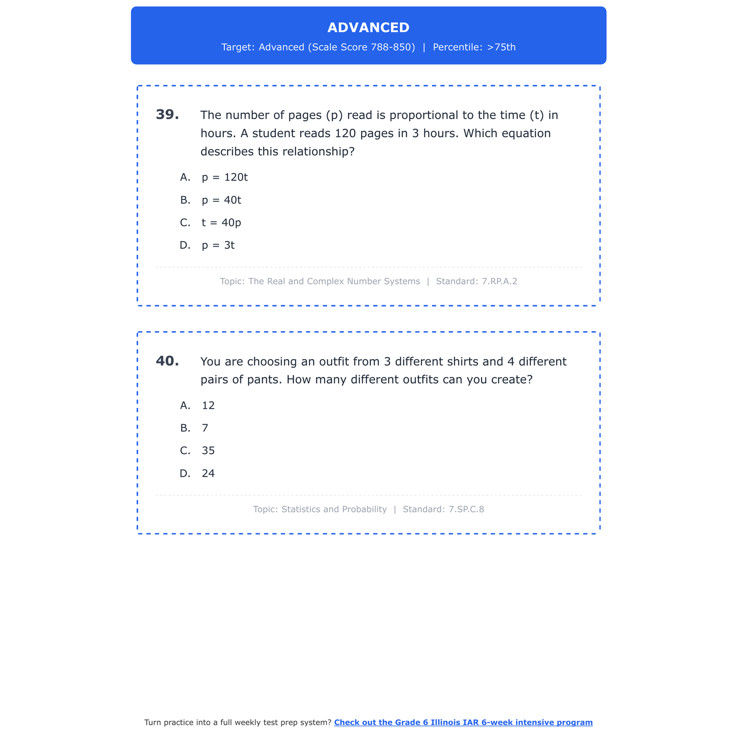 [Grade 7] Illinois IAR Math | 6-Week Prep | All 4 Levels (Scale Score 650-850)