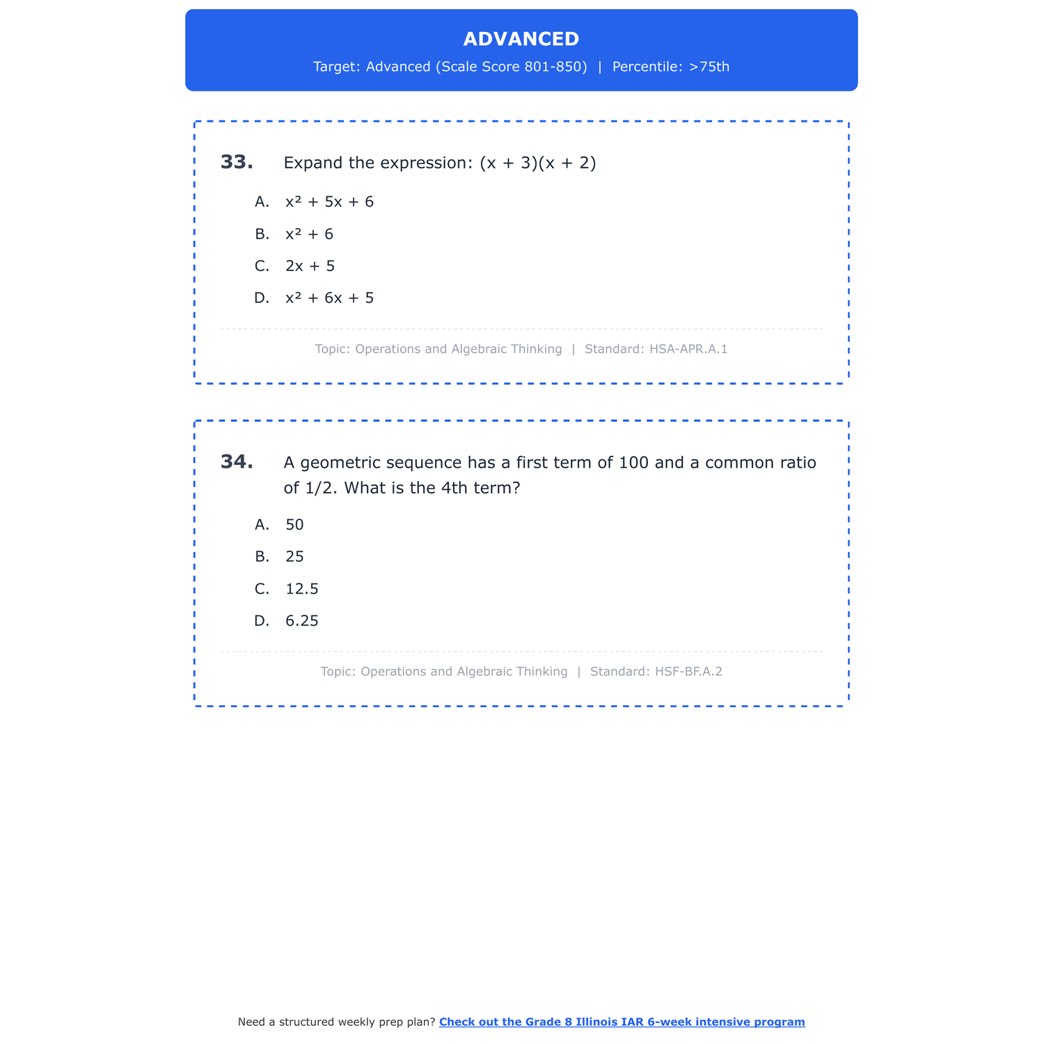 [Grade 8] Illinois IAR Math | 6-Week Prep | All 4 Levels (Scale Score 650-850)