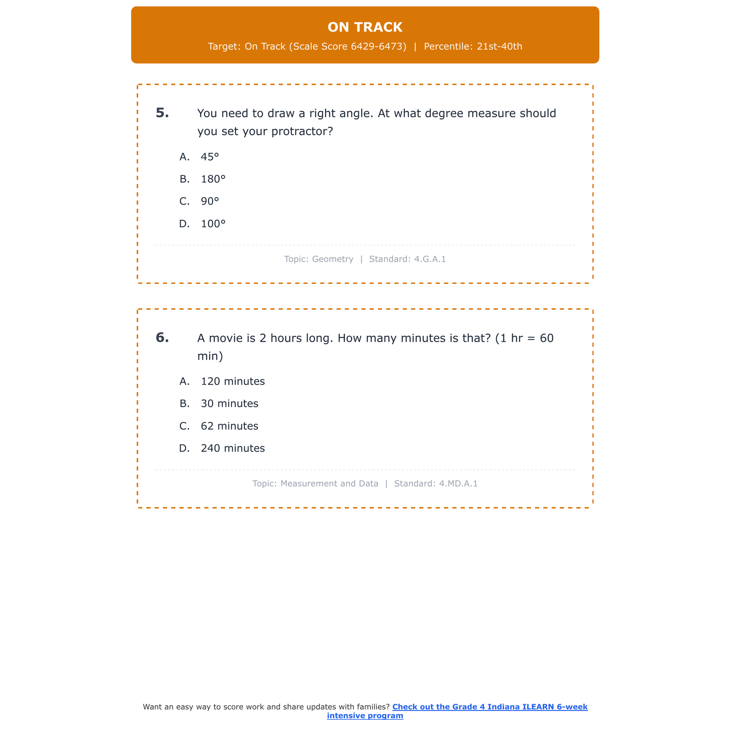 [Grade 4] Indiana ILEARN Math | 6-Week Test Prep Program | Scale Score 6100-6800