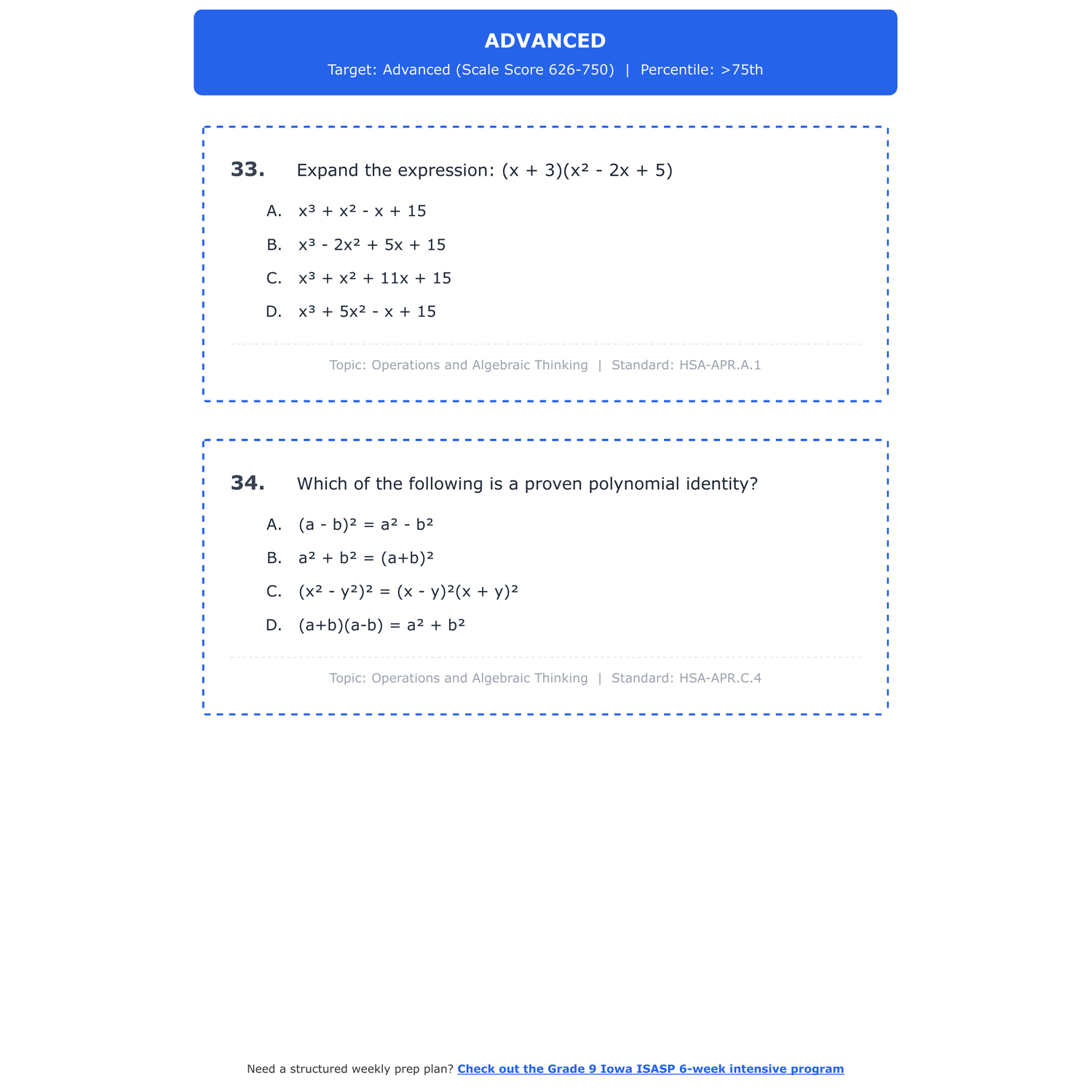 [Grade 9] Iowa ISASP Math | 6-Week Prep | All 4 Levels (Scale Score 410-750)