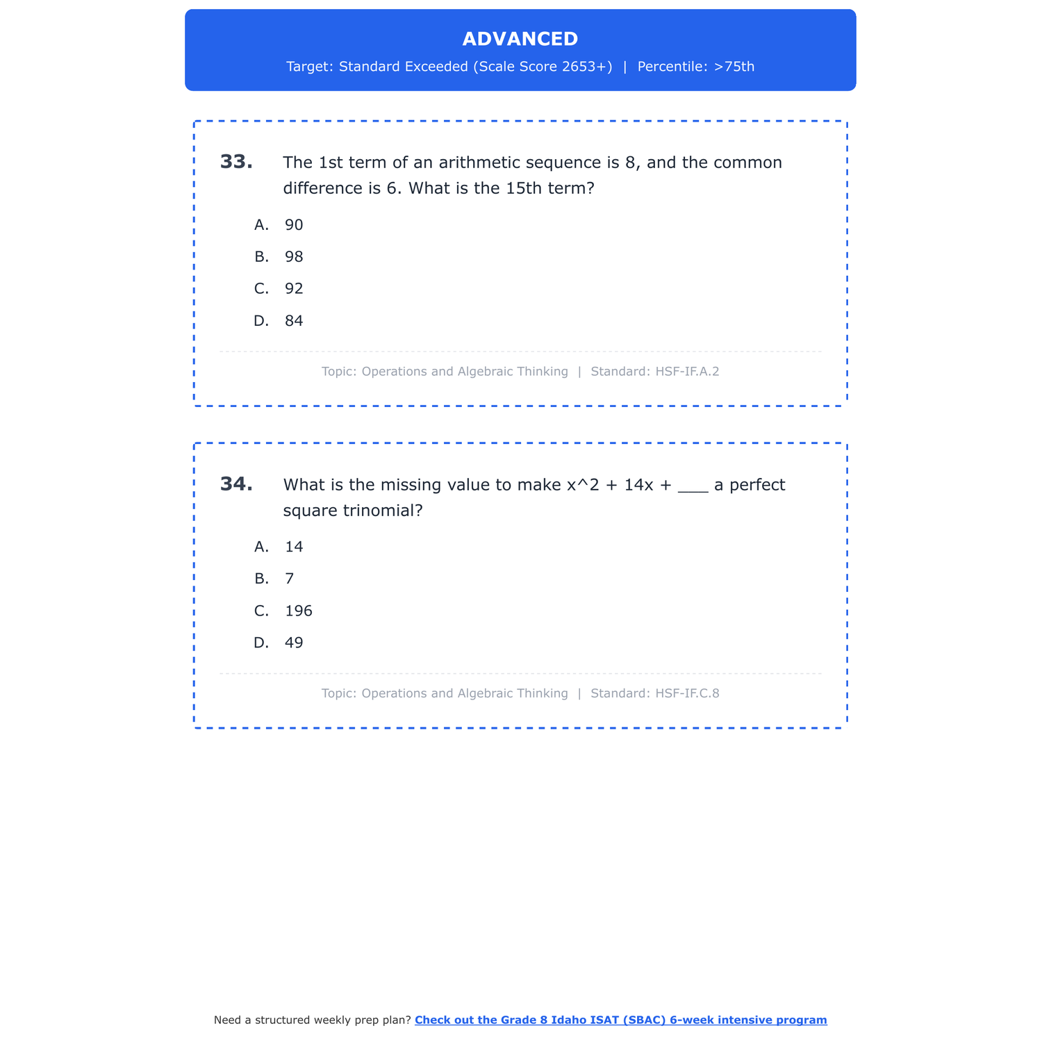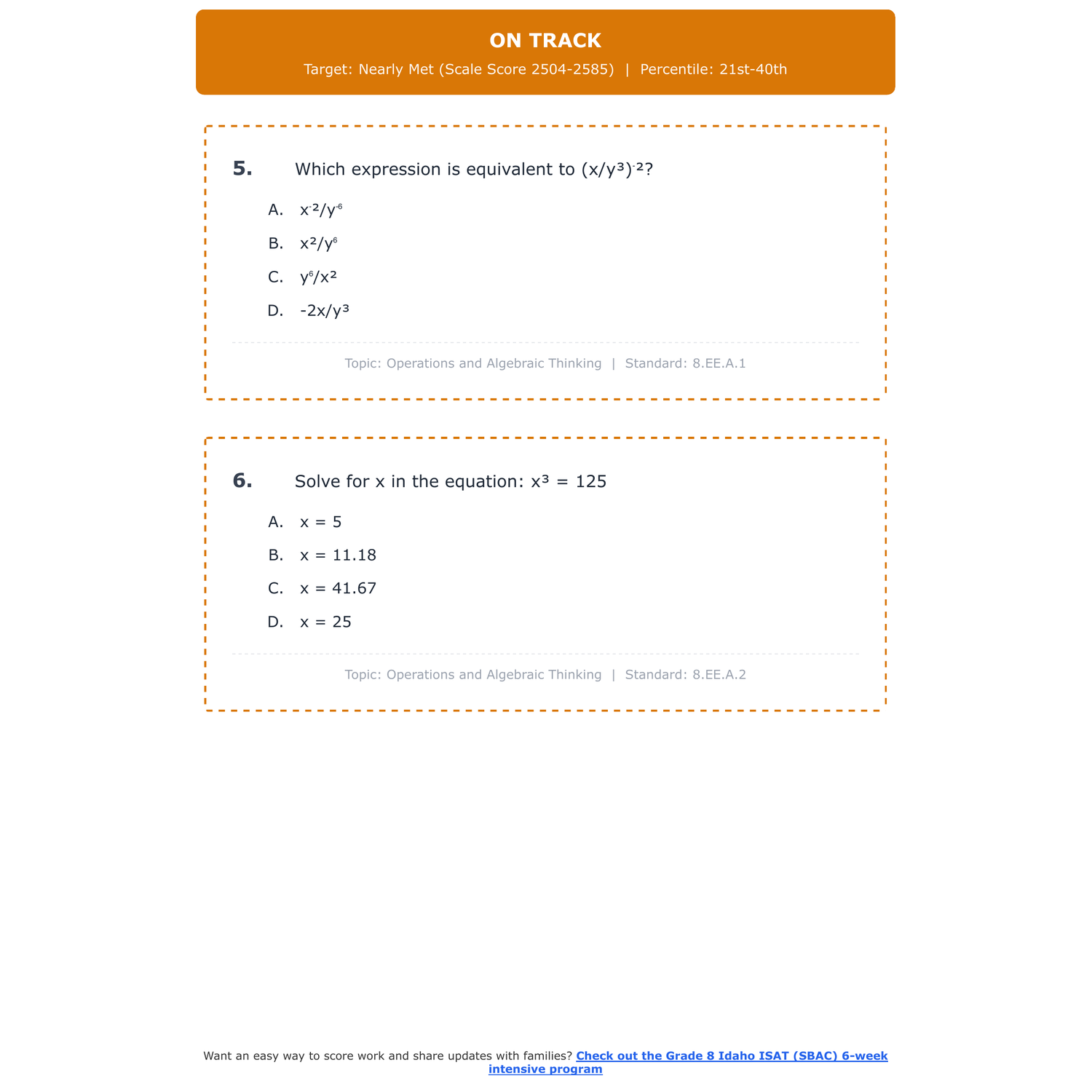 [Grade 8] Idaho ISAT (SBAC) Math | 6-Week Test Prep | Scale Score 2504-2653+