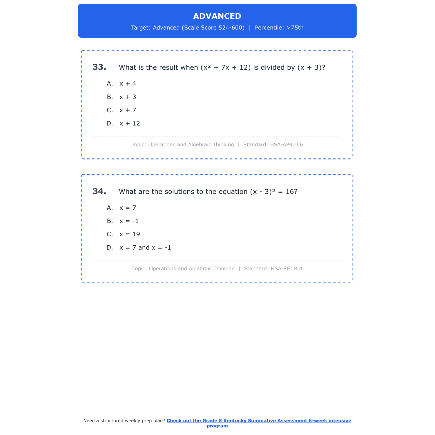 [Grade 8] Kentucky Summative Assessment Math | 6-Week Prep | Scale Score 400-600