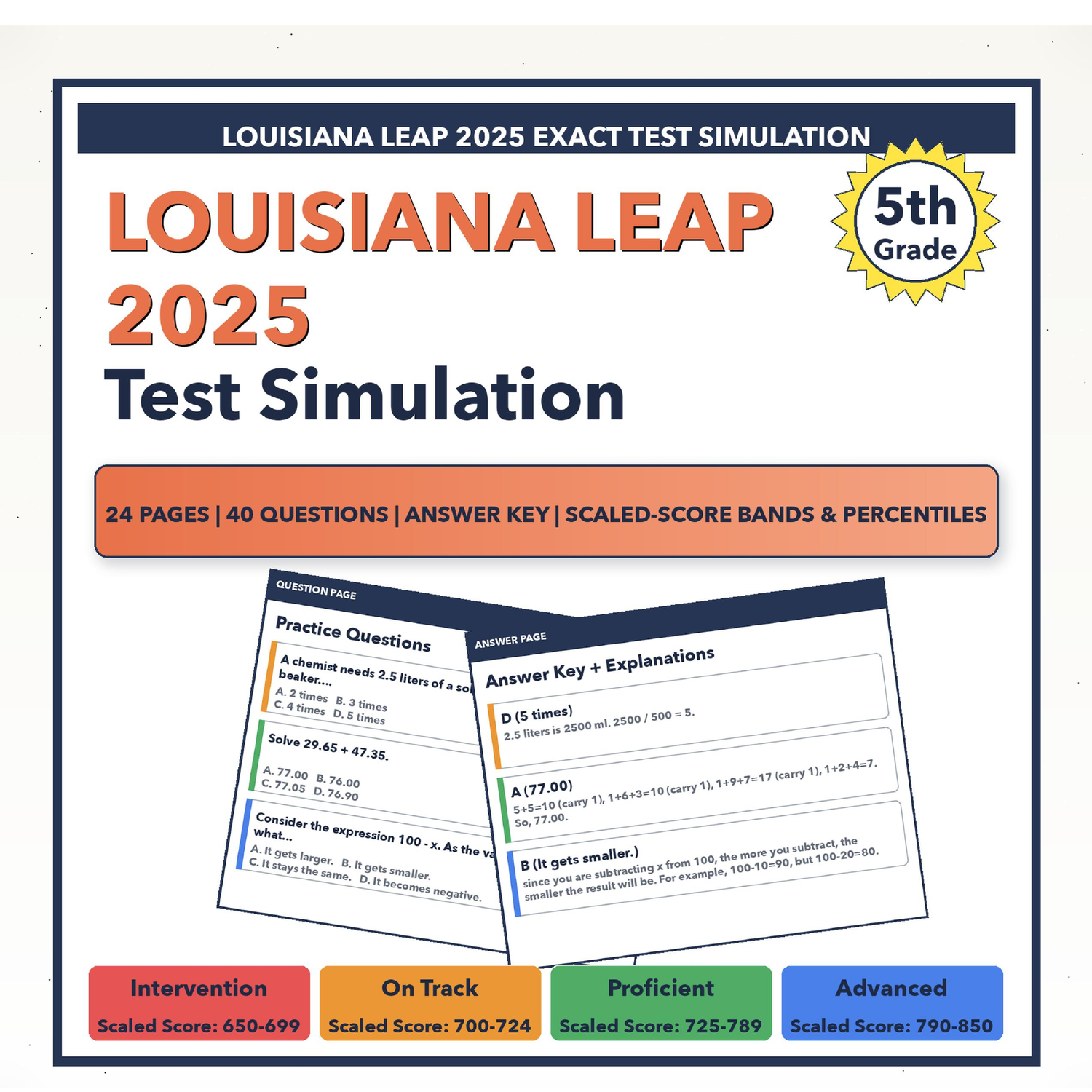 ![[Grade 5] Louisiana LEAP 2025 Math Test Simulation | All 4 Levels (650-850)](https://ai4kywgbx6atalco.public.blob.vercel-storage.com/products/unified-leap-2025-g5/preview/01-testprep_leap_2025_grade5_preview_page1.png)
