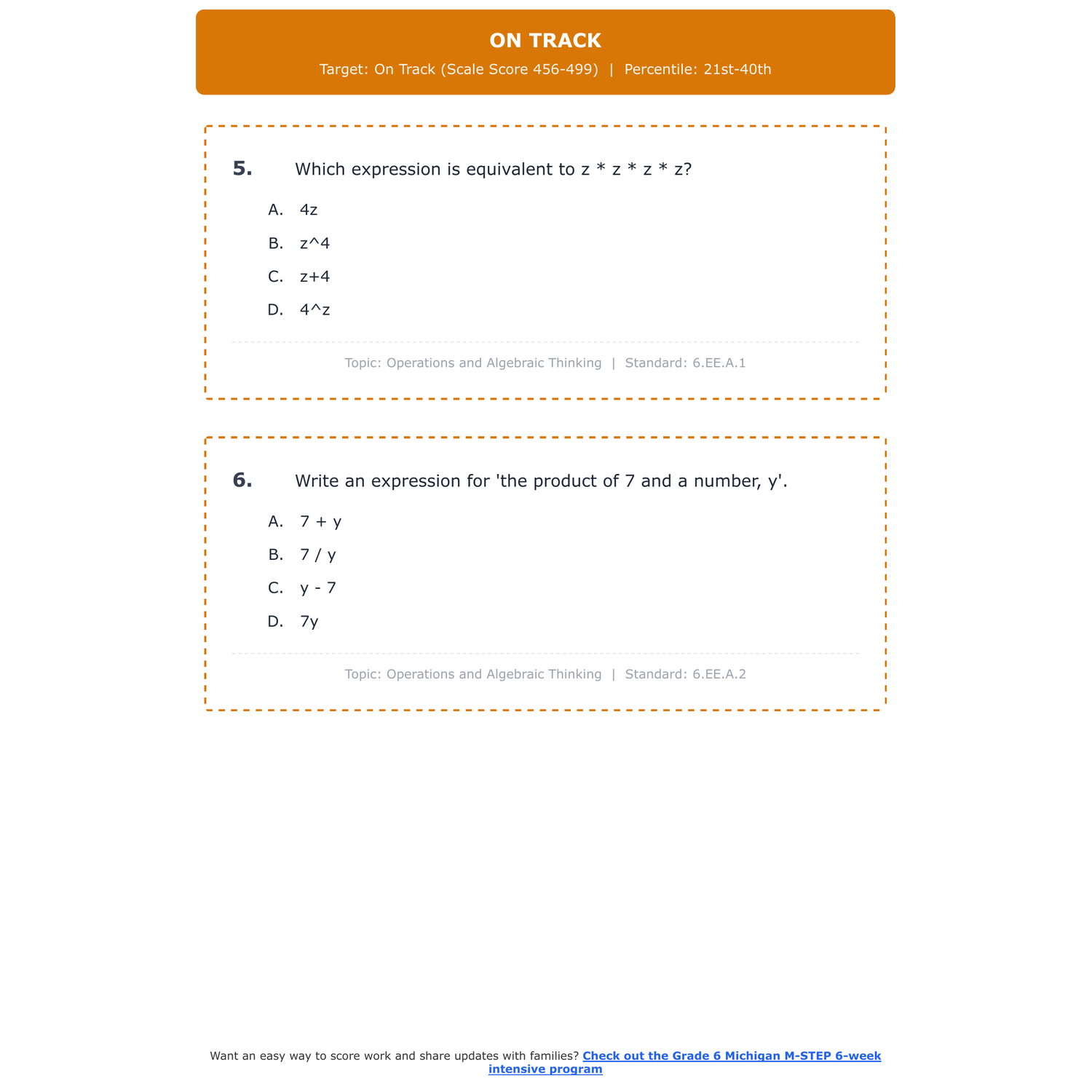 [Grade 6] Michigan M-STEP Math | 6-Week Test Prep Program | Scale Score 400-700