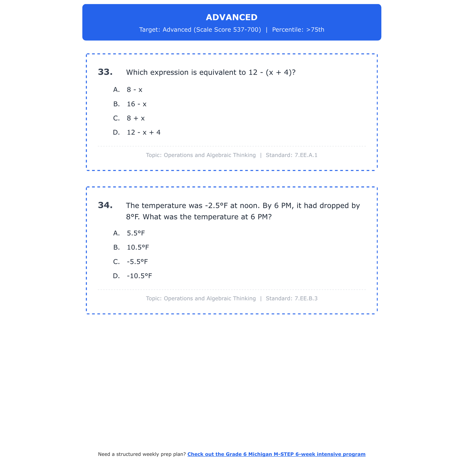 [Grade 7] Michigan M-STEP Math | 6-Week Test Prep Program | Scale Score 400-700