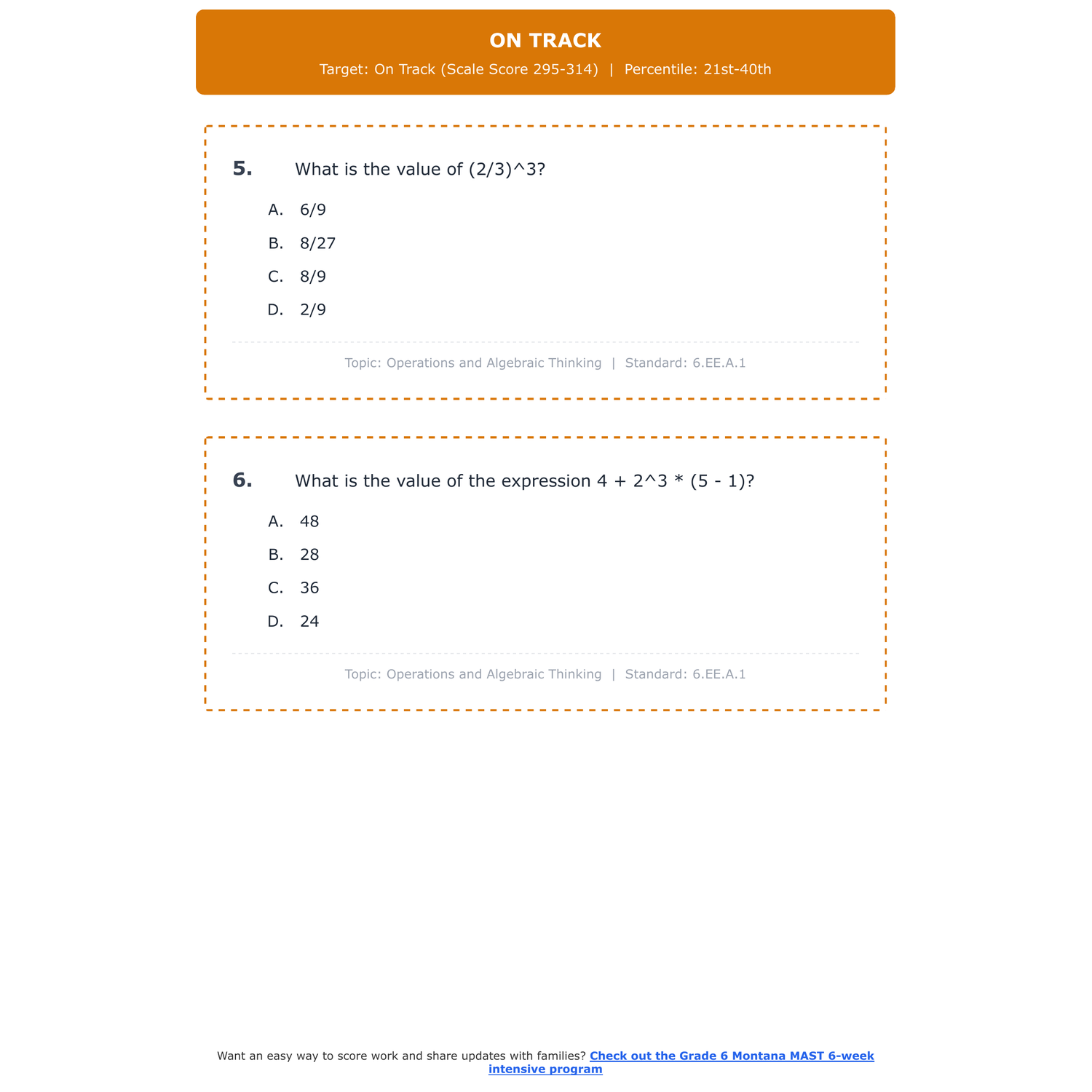 [Grade 6] Montana MAST Math | 6-Week Prep | All 4 Levels (Scale Score 250-400)