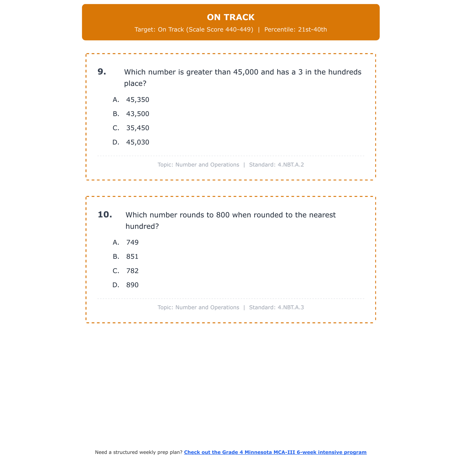 [Grade 4] Minnesota MCA-III Math | 6-Week Test Prep | Scale Score 409-499