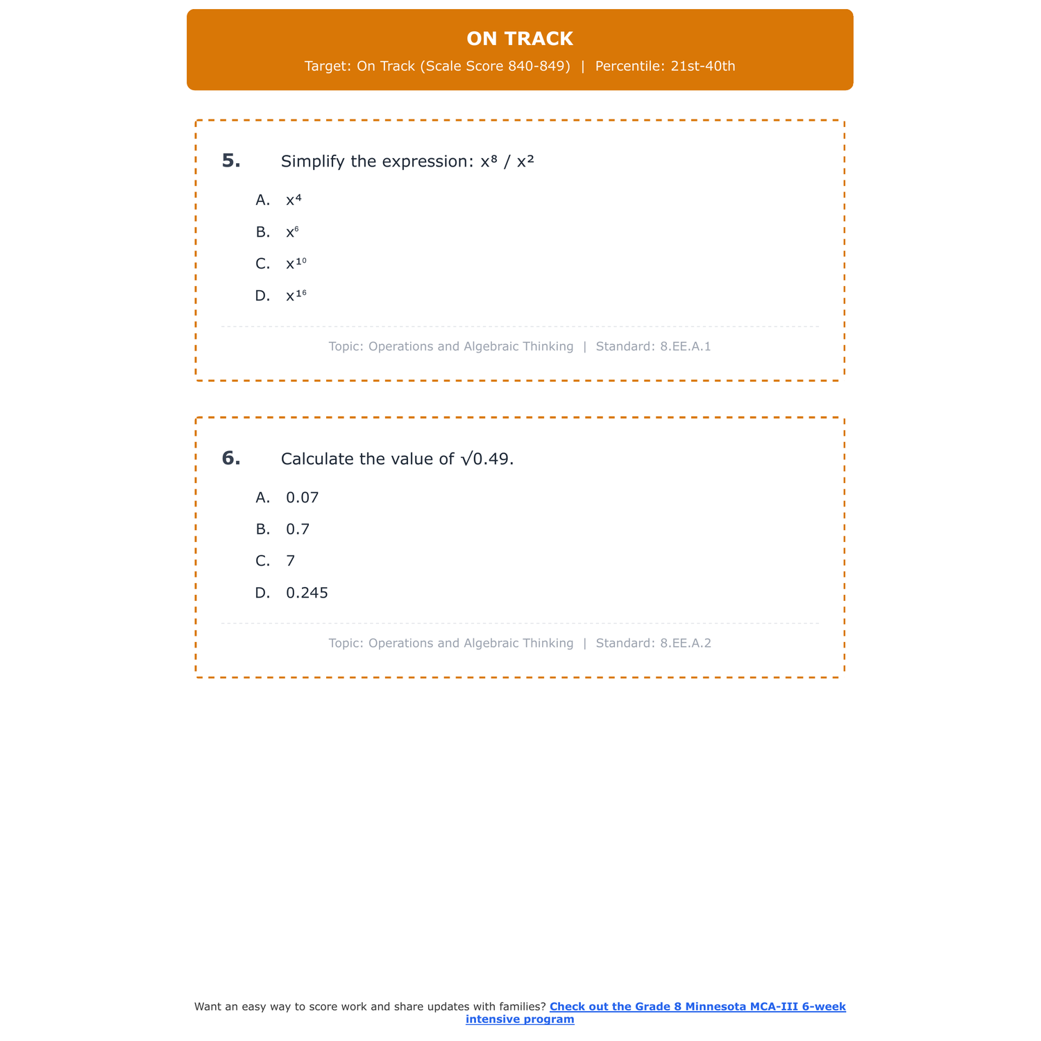[Grade 8] Minnesota MCA-III Math | 6-Week Test Prep | Scale Score 813-888