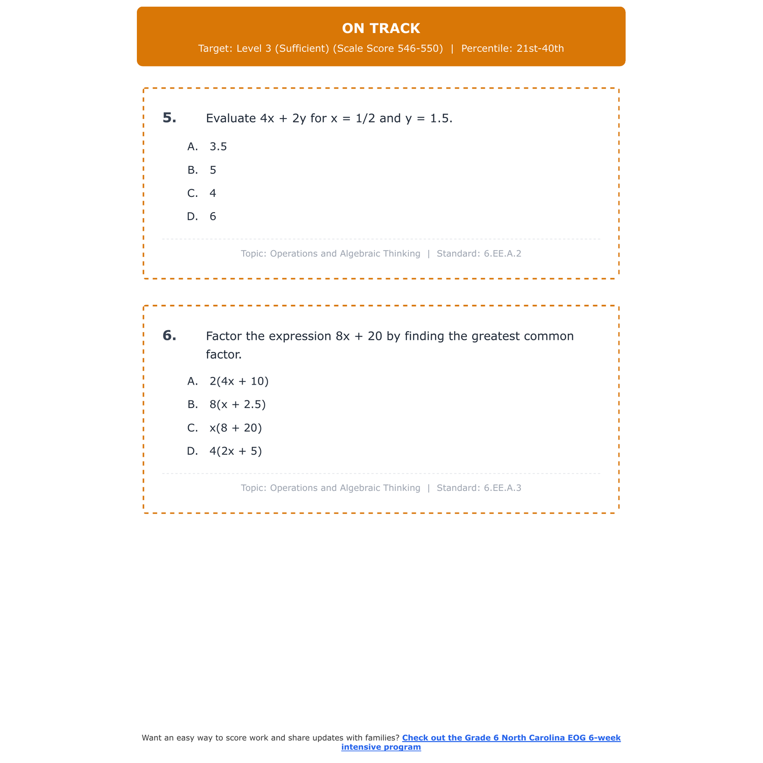 [Grade 6] North Carolina EOG Math | 6-Week Test Prep | Scale Score 546-561+