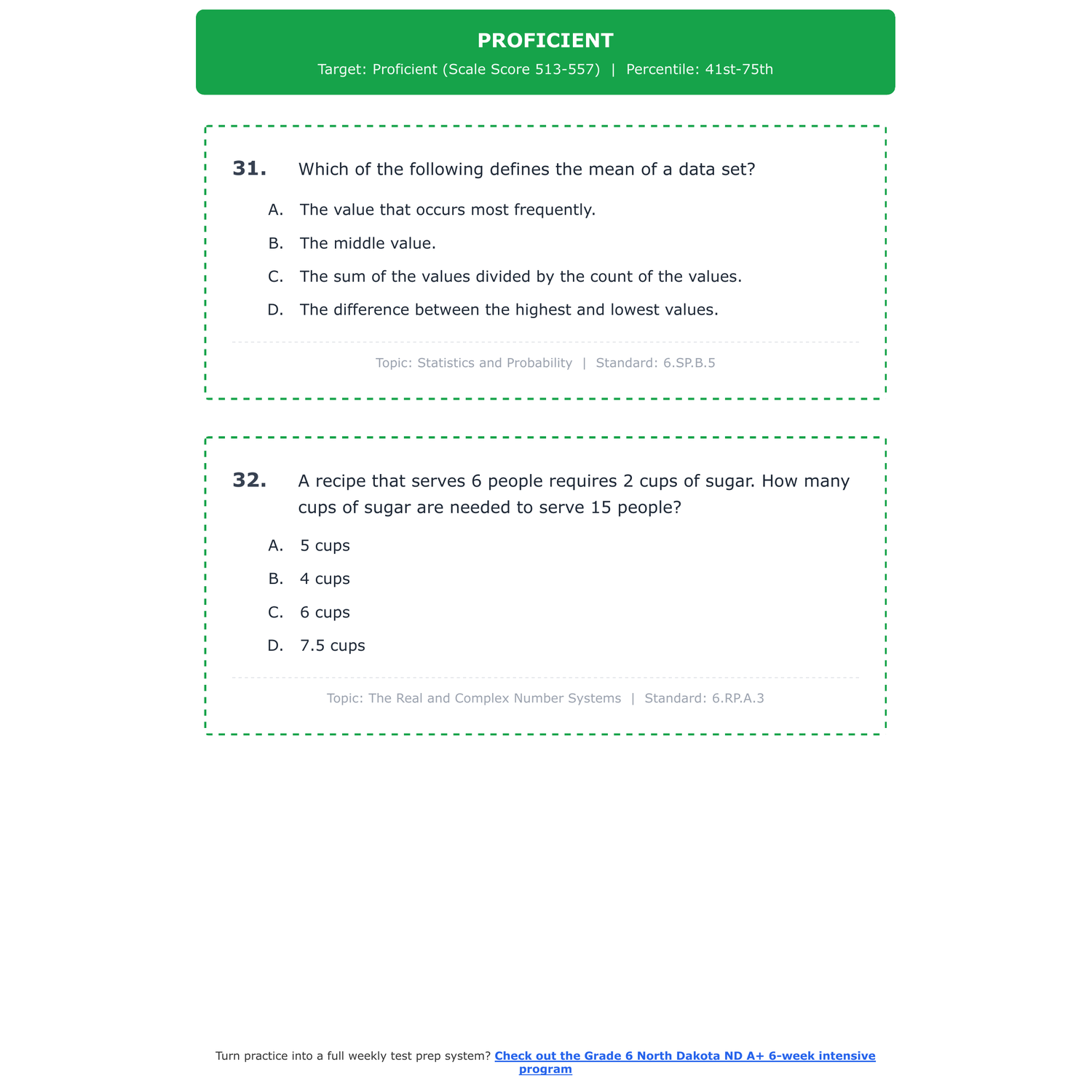 [Grade 6] North Dakota ND A+ Math | 6-Week Test Prep | Scale Score 300-650