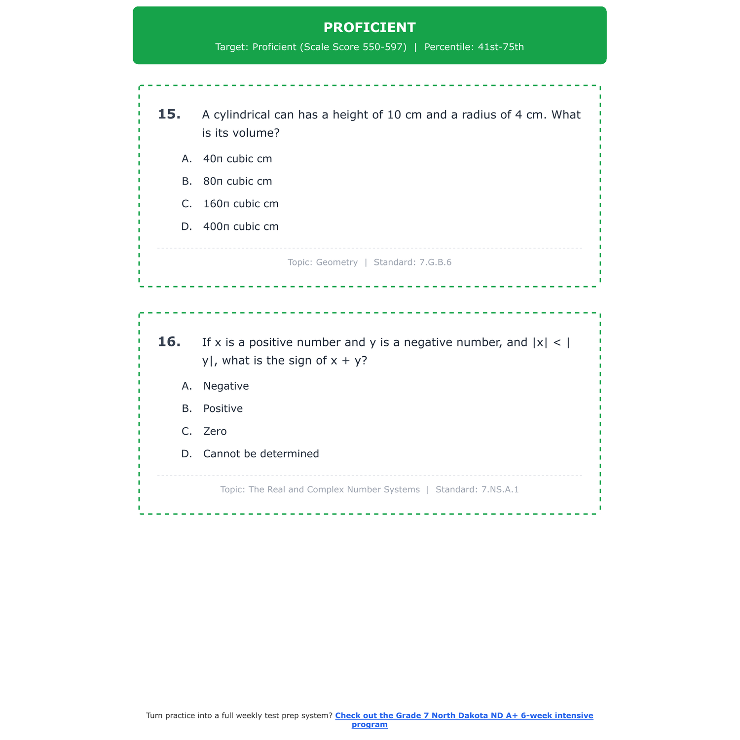 [Grade 7] North Dakota ND A+ Math | 6-Week Test Prep | Scale Score 300-700