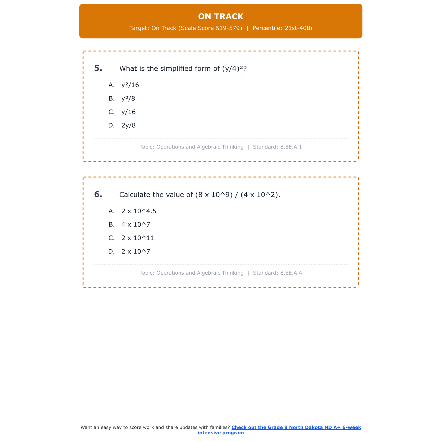 [Grade 8] North Dakota ND A+ Math | 6-Week Test Prep | Scale Score 300-750