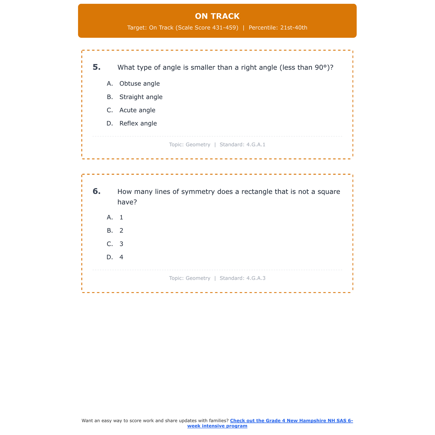 [Grade 4] New Hampshire NH SAS Math | 6-Week Test Prep | Scale Score 310-610