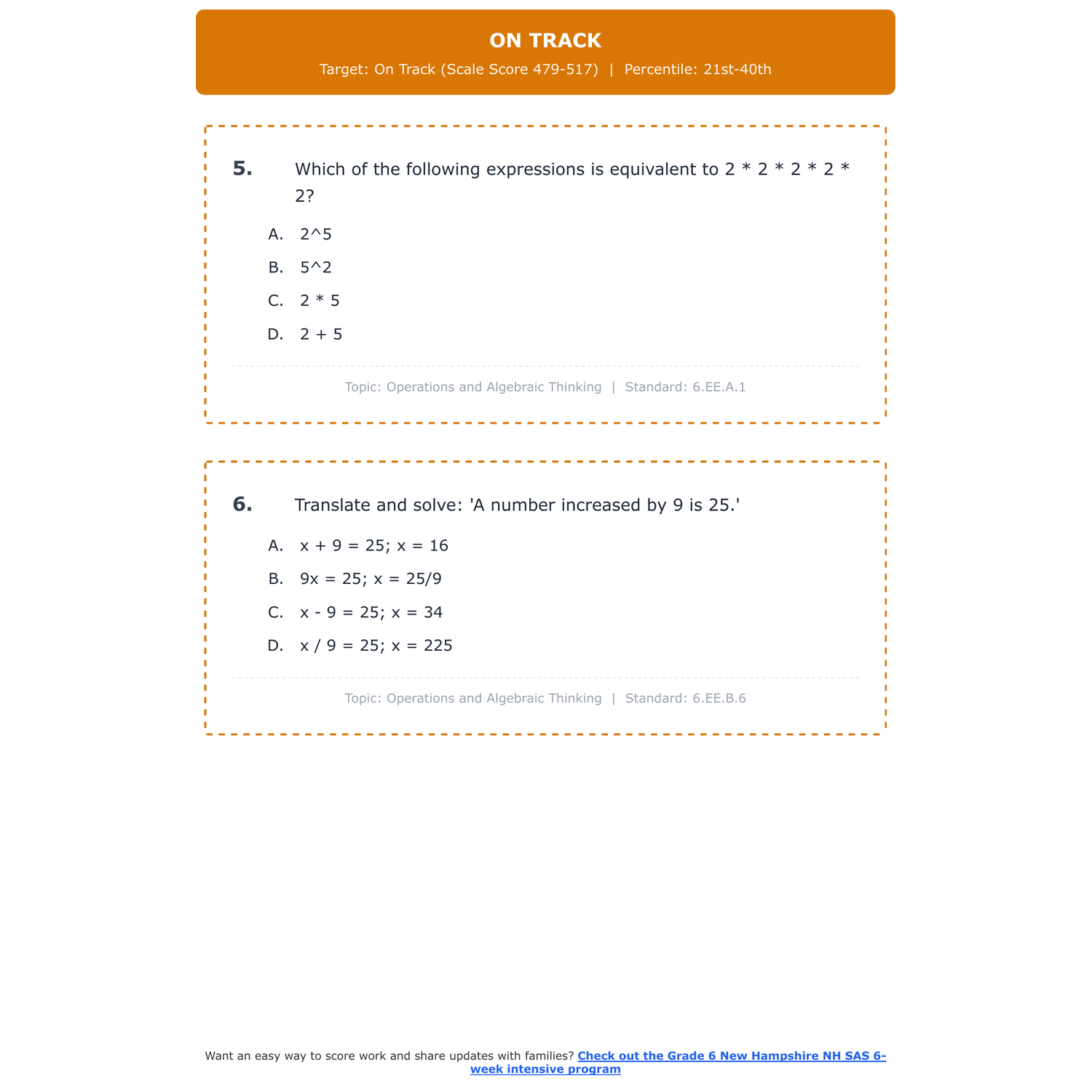 [Grade 5] New Hampshire NH SAS Math | 6-Week Test Prep | Scale Score 320-660