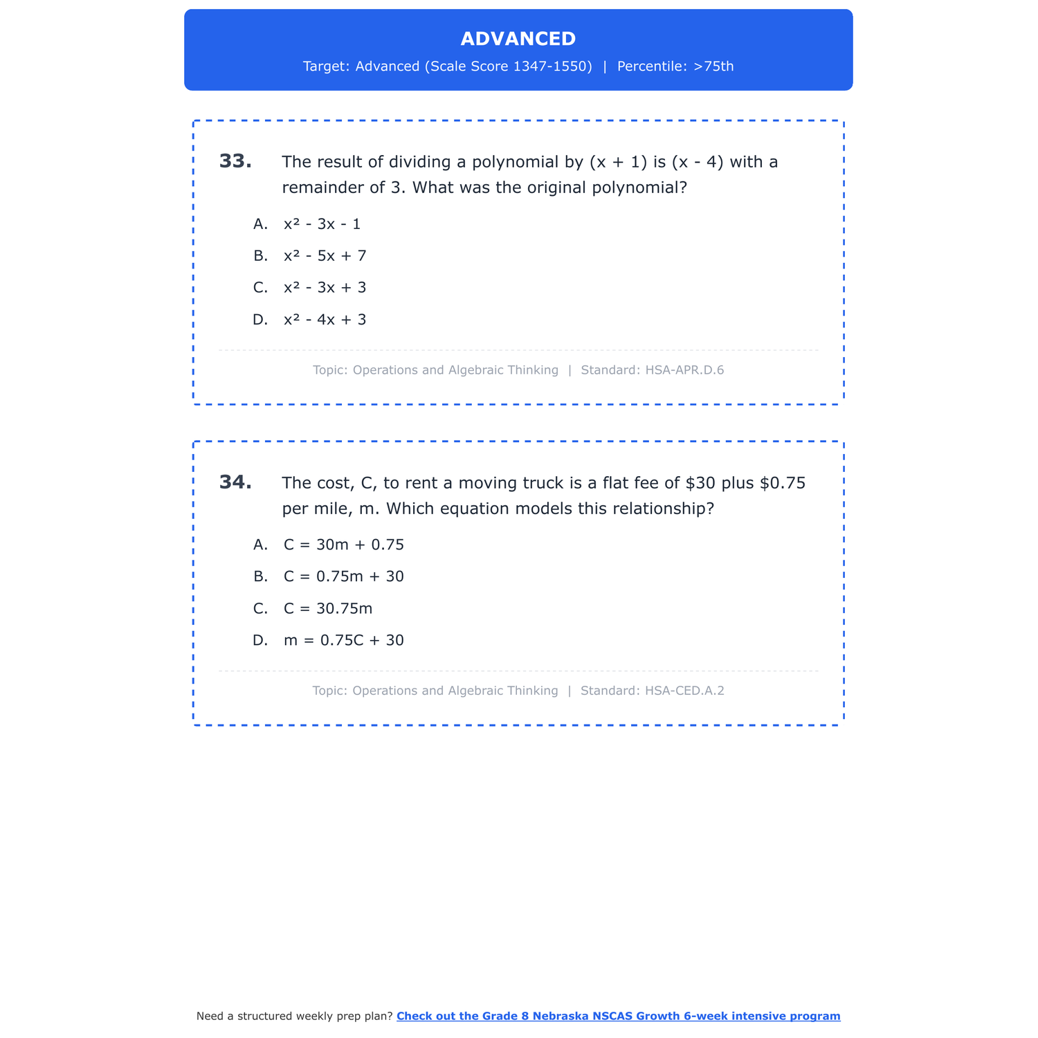 [Grade 8] Nebraska NSCAS Growth Math | 6-Week Test Prep | Scale Score 1050-1550