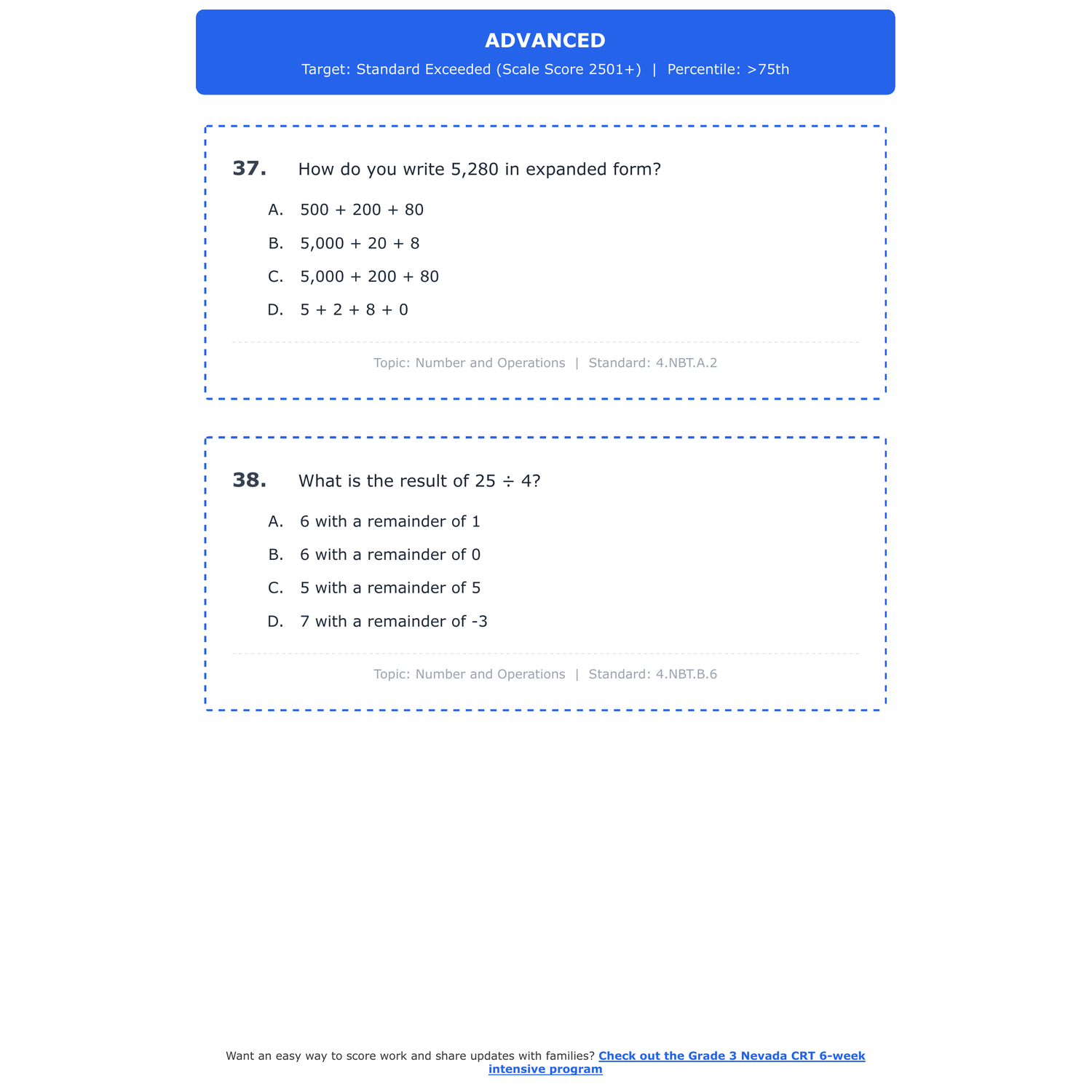 [Grade 4] Nevada CRT Math | 6-Week Prep | All 4 Levels (Scale Score 2411-2549+)