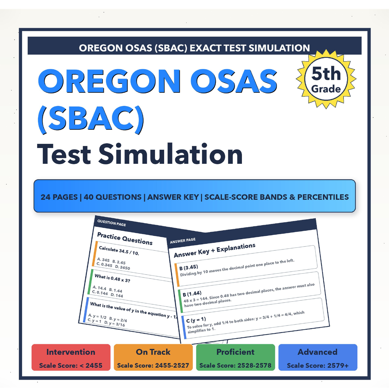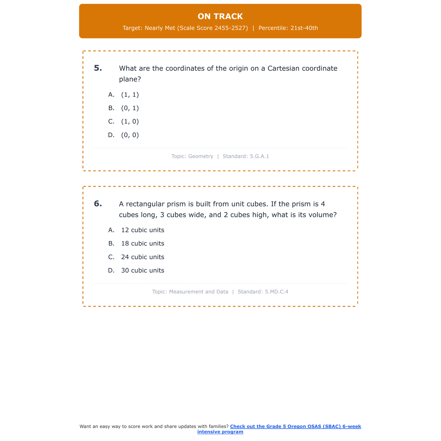 [Grade 5] Oregon OSAS (SBAC) Math | 6-Week Test Prep | Scale Score 2455-2579+