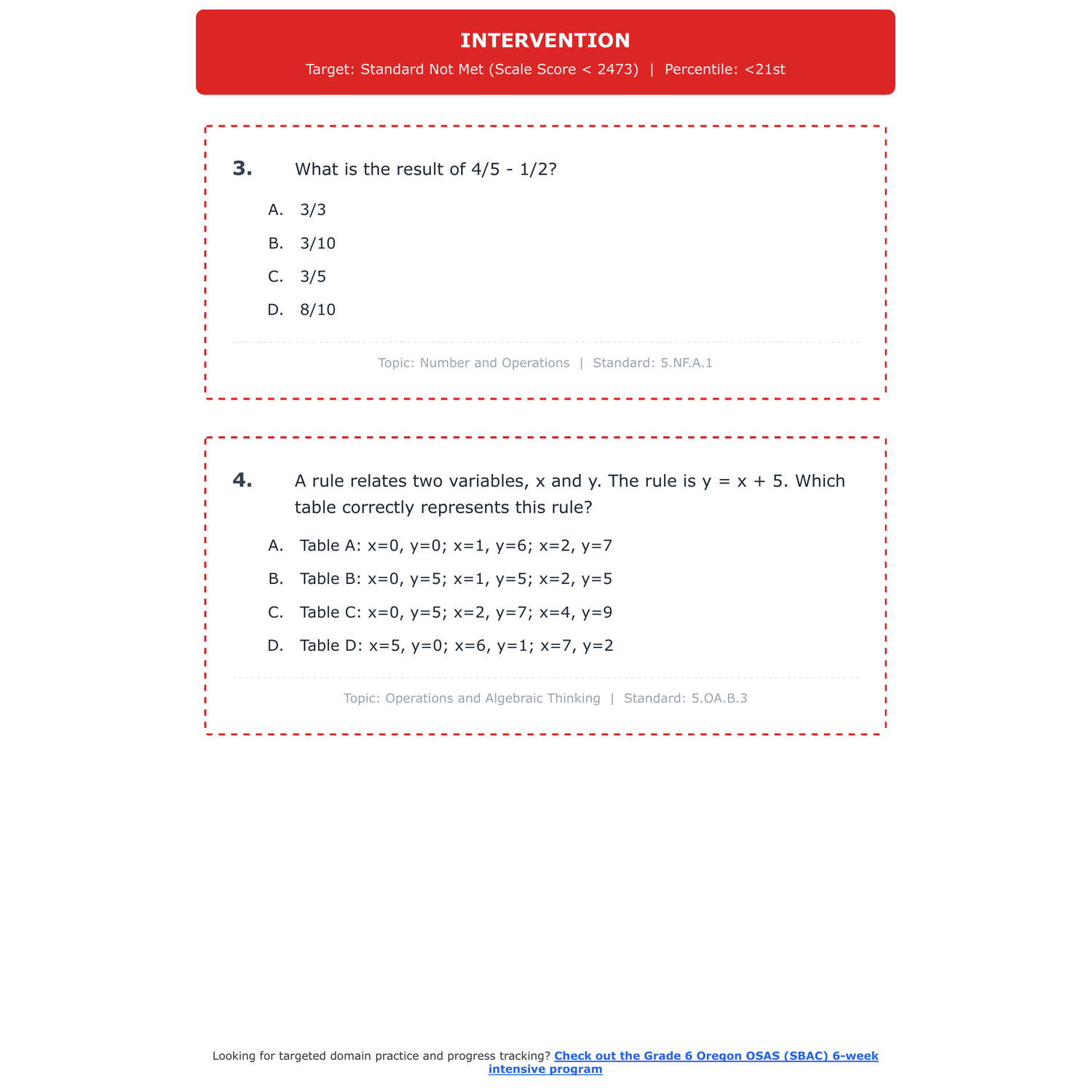 [Grade 5] Oregon OSAS (SBAC) Math | 6-Week Test Prep | Scale Score 2455-2579+
