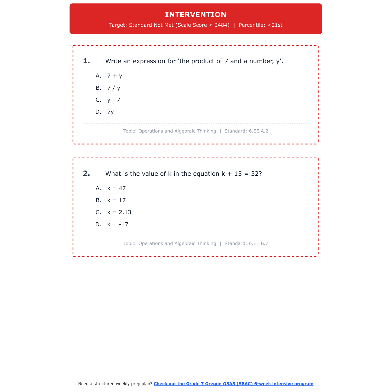 [Grade 7] Oregon OSAS (SBAC) Math | 6-Week Test Prep | Scale Score 2484-2635+