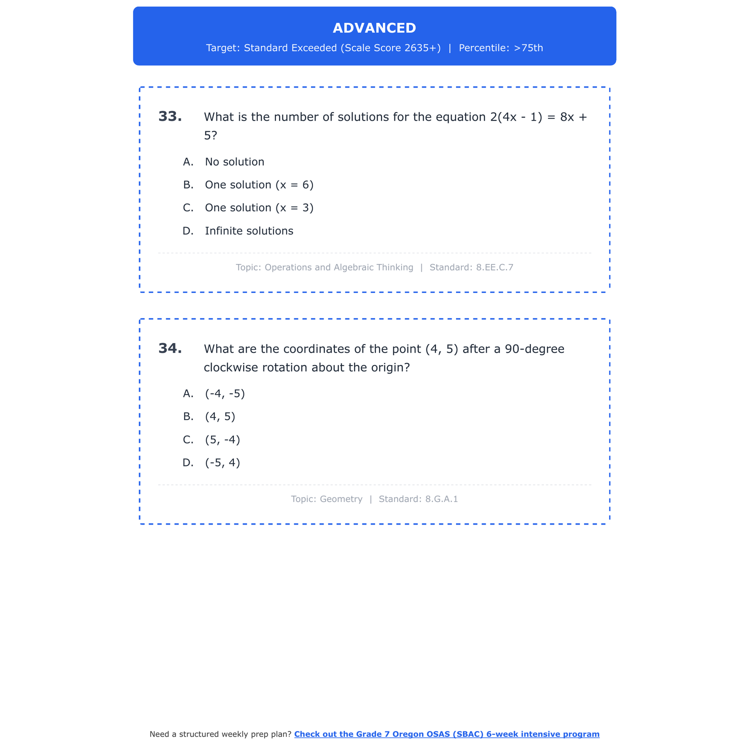 [Grade 8] Oregon OSAS (SBAC) Math | 6-Week Test Prep | Scale Score 2504-2653+