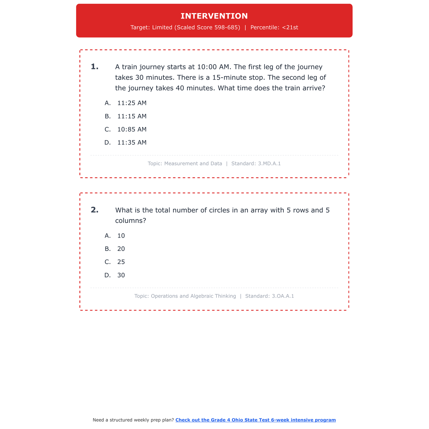 [Grade 3] Ohio State Test Math | 6-Week Test Prep | Scaled Score 587-725+