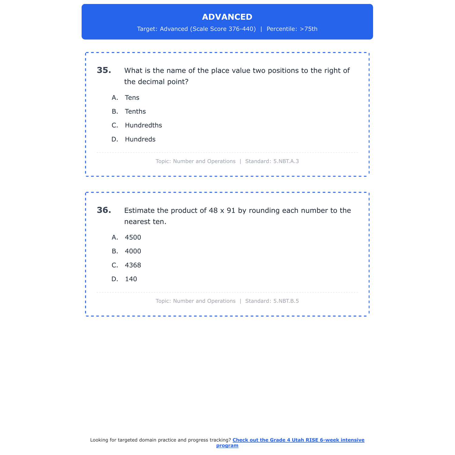 [Grade 4] Utah RISE Math | 6-Week Test Prep | All 4 Levels (Scale Score 240-440)