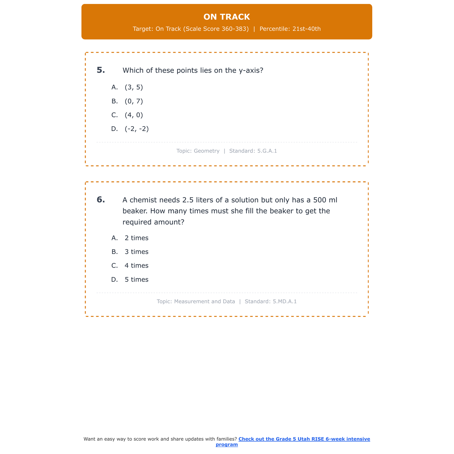[Grade 5] Utah RISE Math | 6-Week Test Prep | All 4 Levels (Scale Score 260-500)