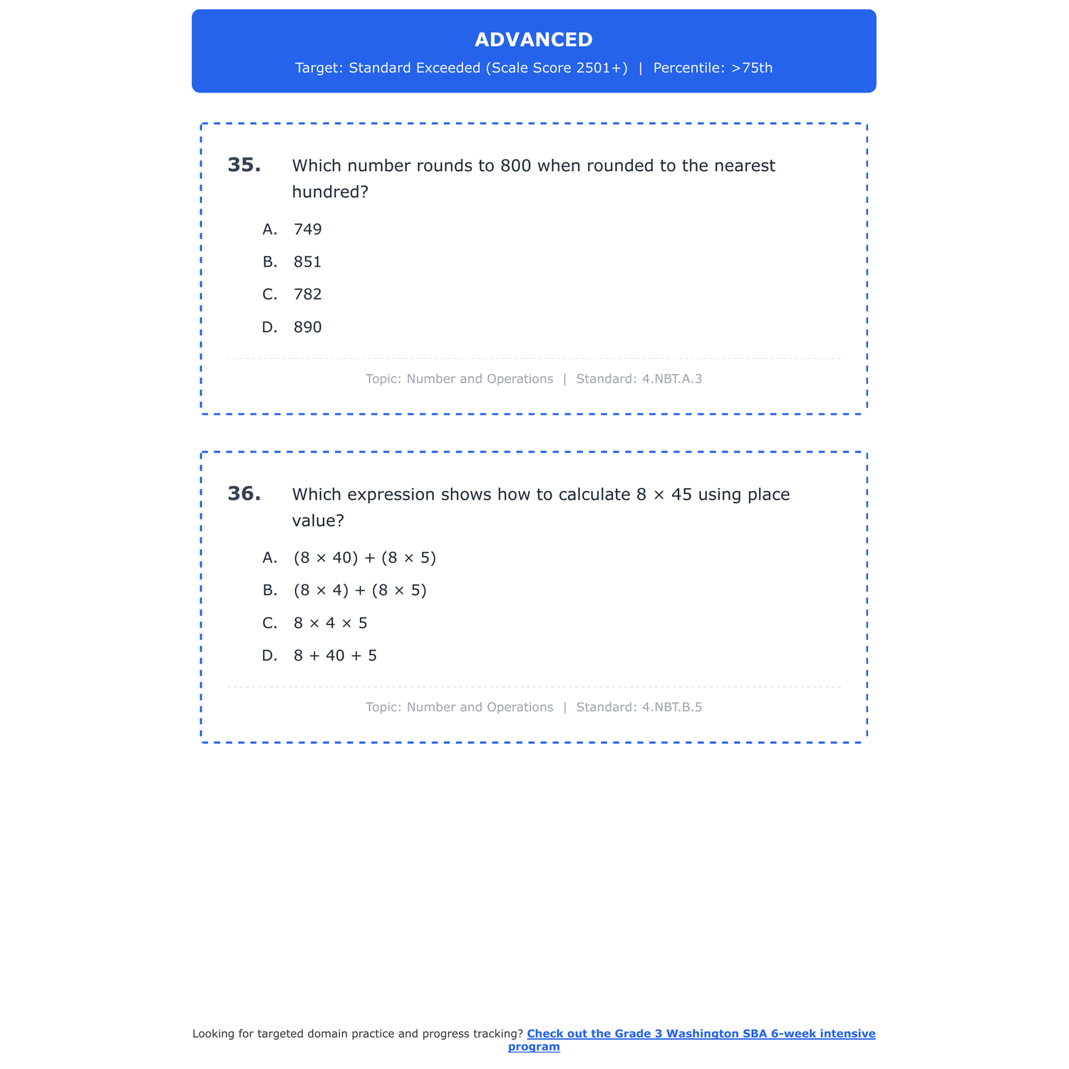 [Grade 4] Washington SBA Math | 6-Week Test Prep | Scale Score 2411-2549+