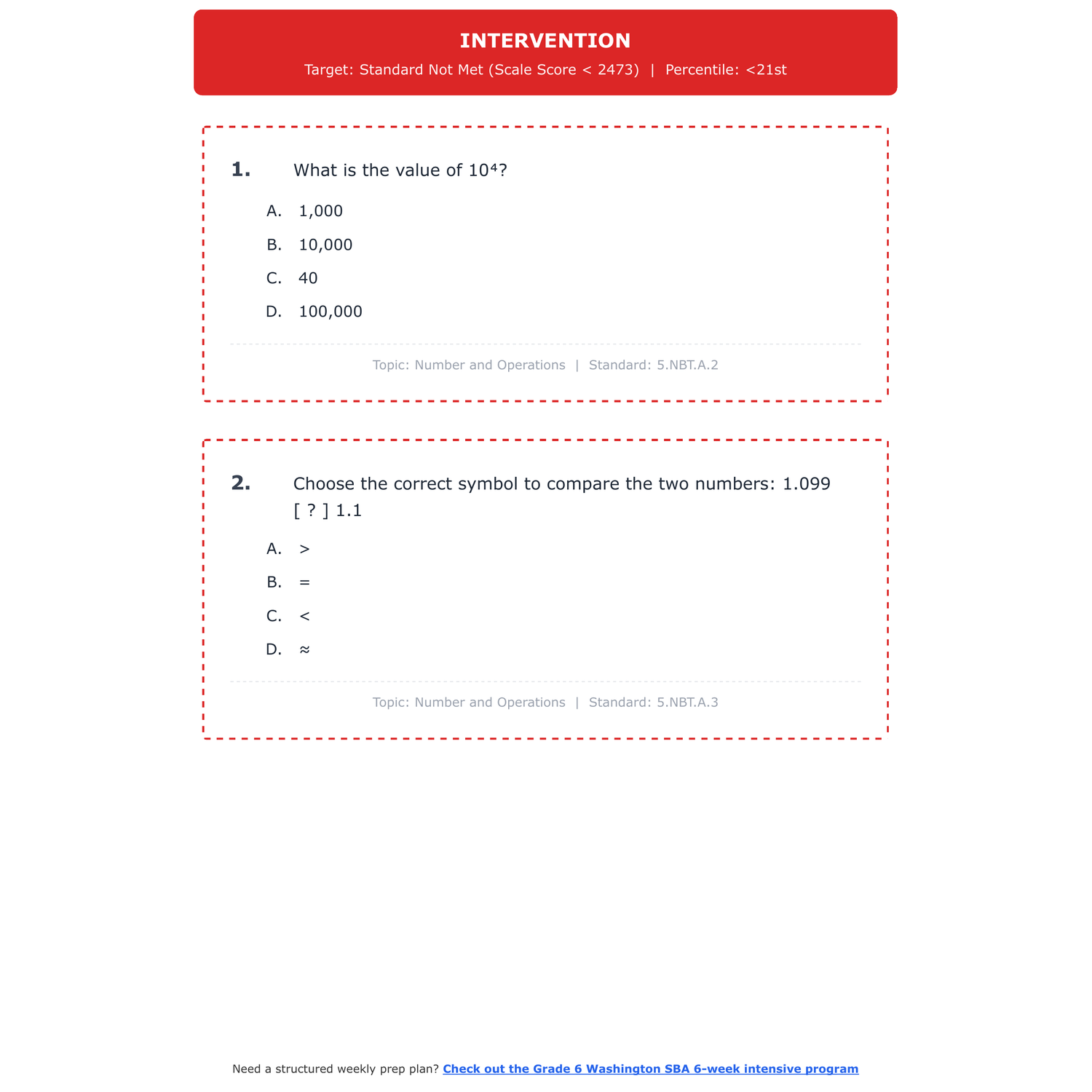 [Grade 5] Washington SBA Math | 6-Week Test Prep | Scale Score 2455-2579+