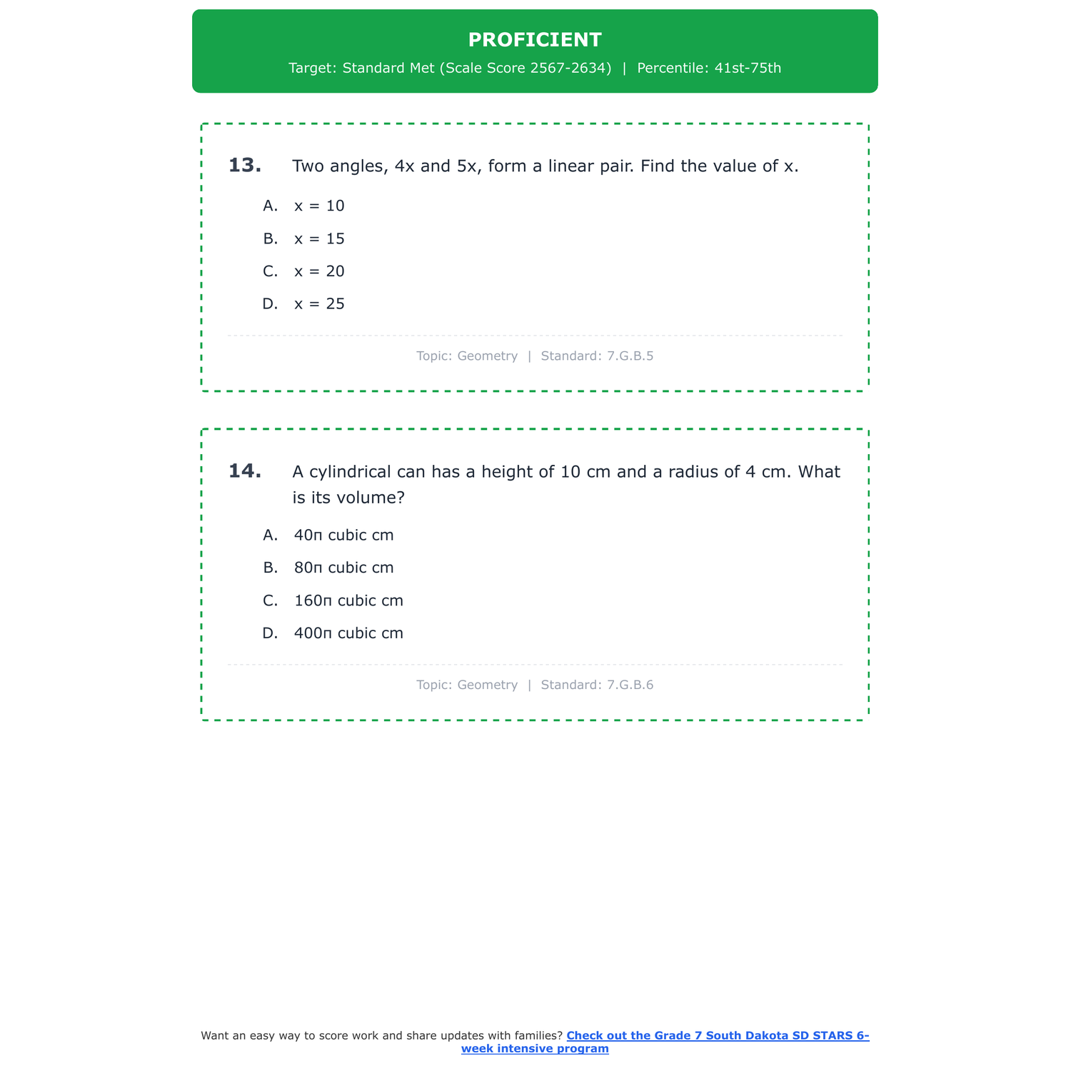 [Grade 7] South Dakota SD STARS Math | 6-Week Test Prep | Scale Score 2484-2635+