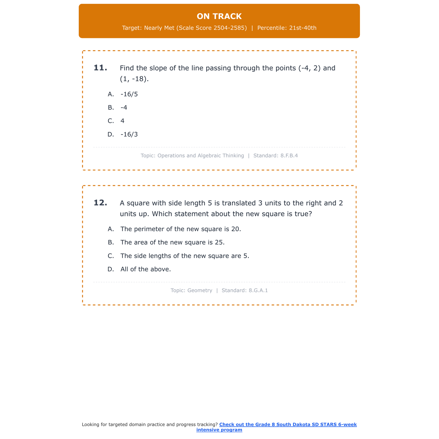 [Grade 8] South Dakota SD STARS Math | 6-Week Test Prep | Scale Score 2504-2653+