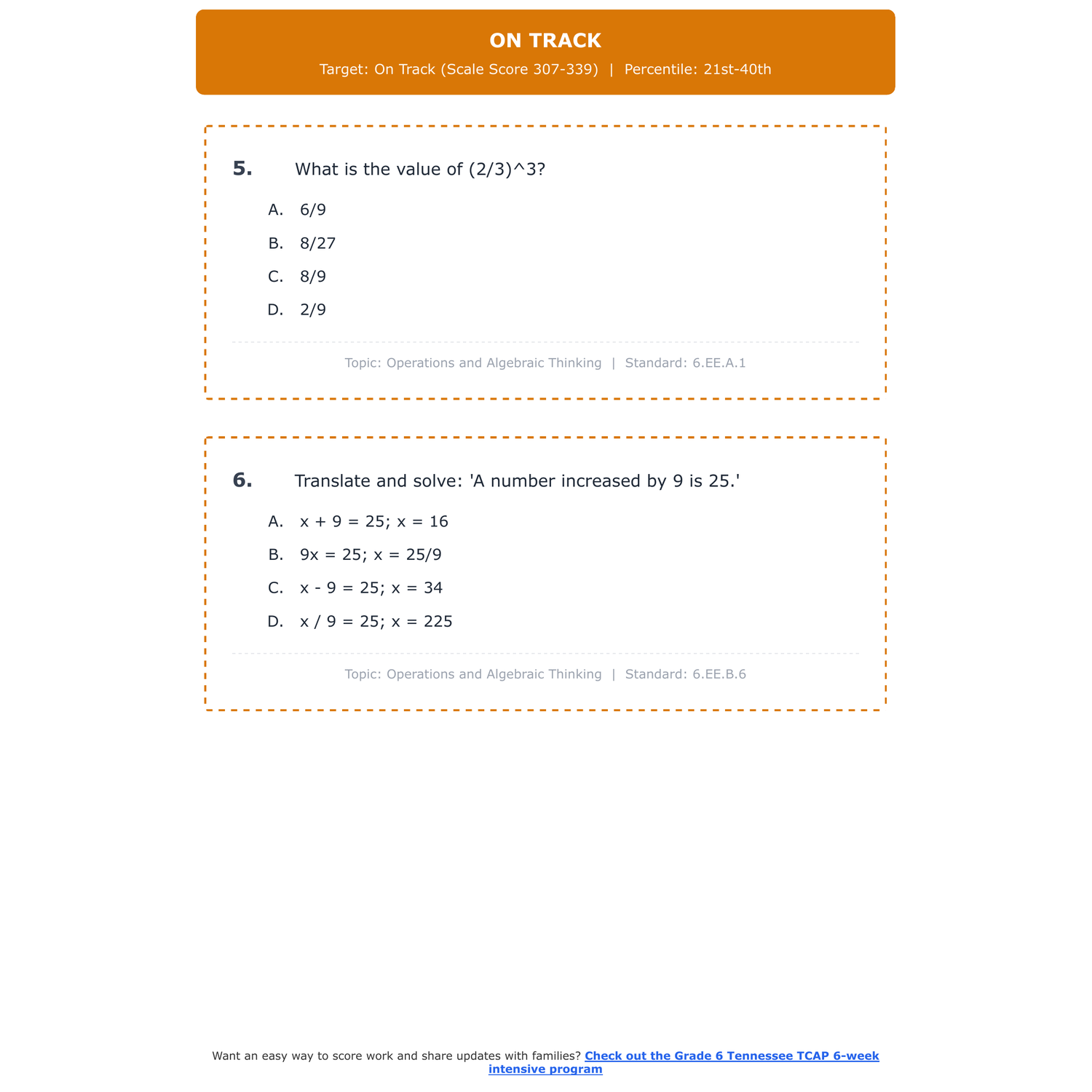 [Grade 6] Tennessee TCAP Math | 6-Week Prep | All 4 Levels (Scale Score 200-450)