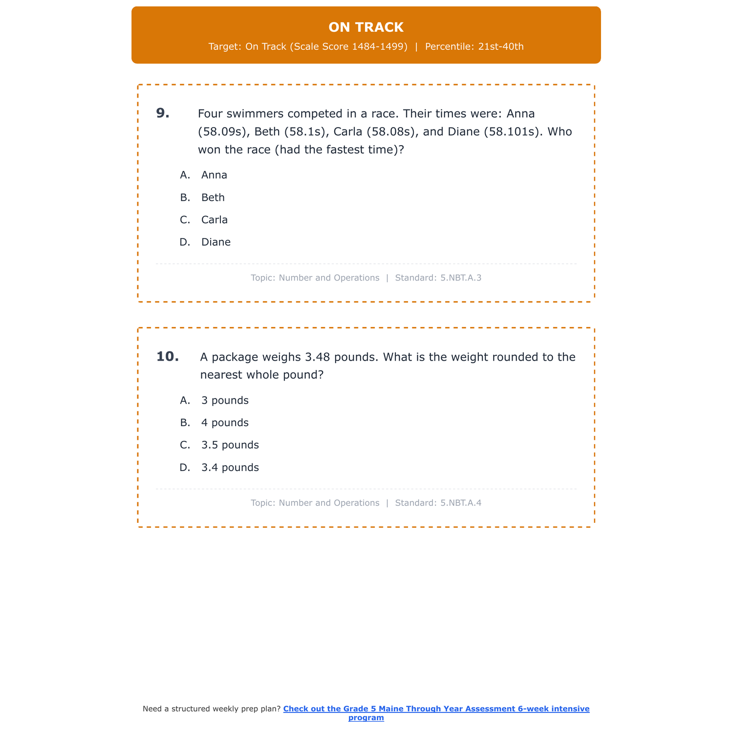 [Grade 5] Maine Through Year Assessment Math | 6-Week Test Prep | 1400-1600