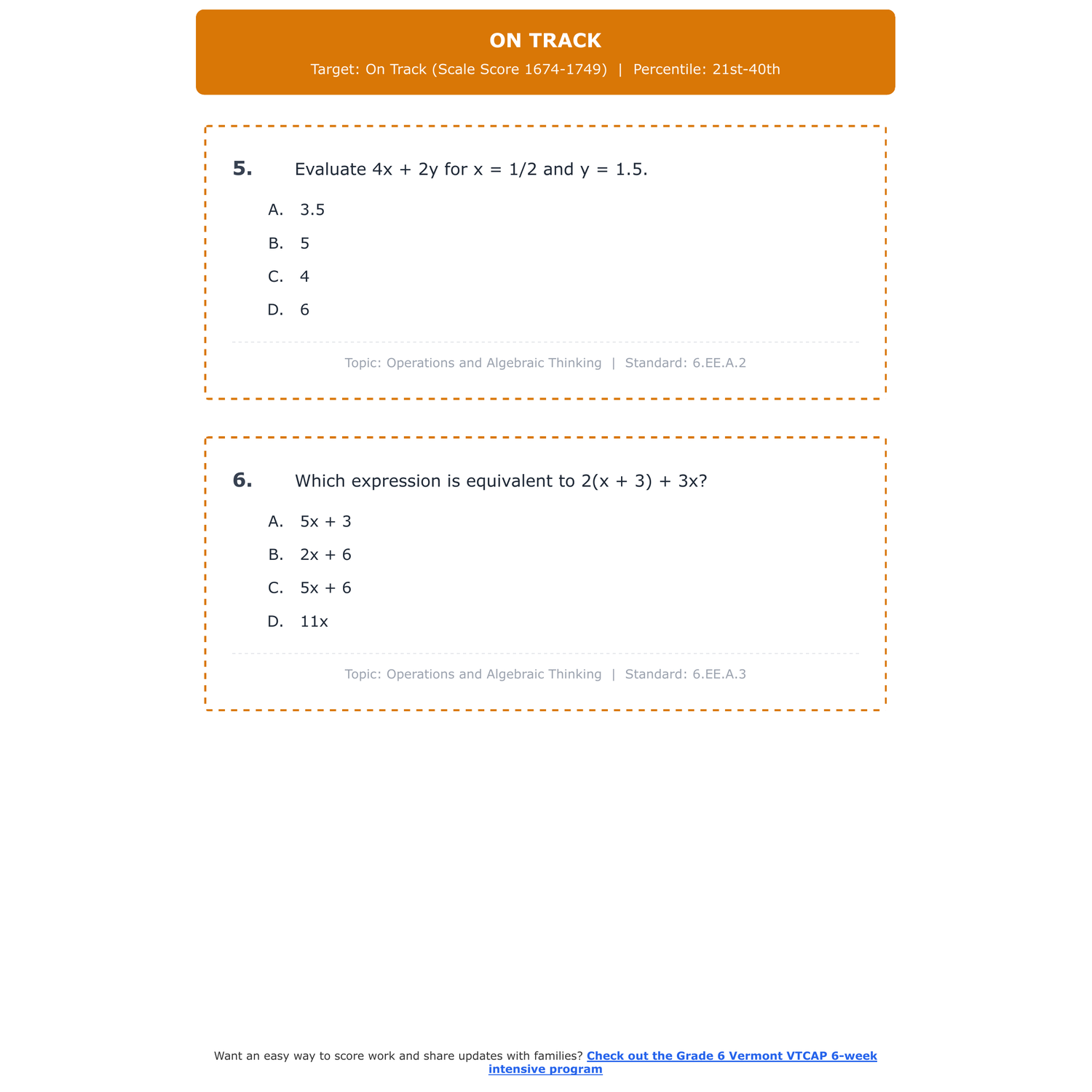 [Grade 6] Vermont VTCAP Math | 6-Week Test Prep Program | Scale Score 1500-2000
