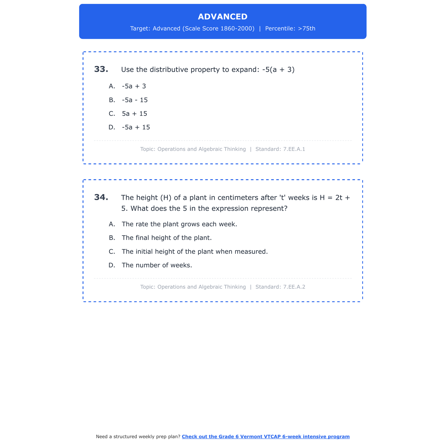 [Grade 7] Vermont VTCAP Math | 6-Week Test Prep Program | Scale Score 1500-2000