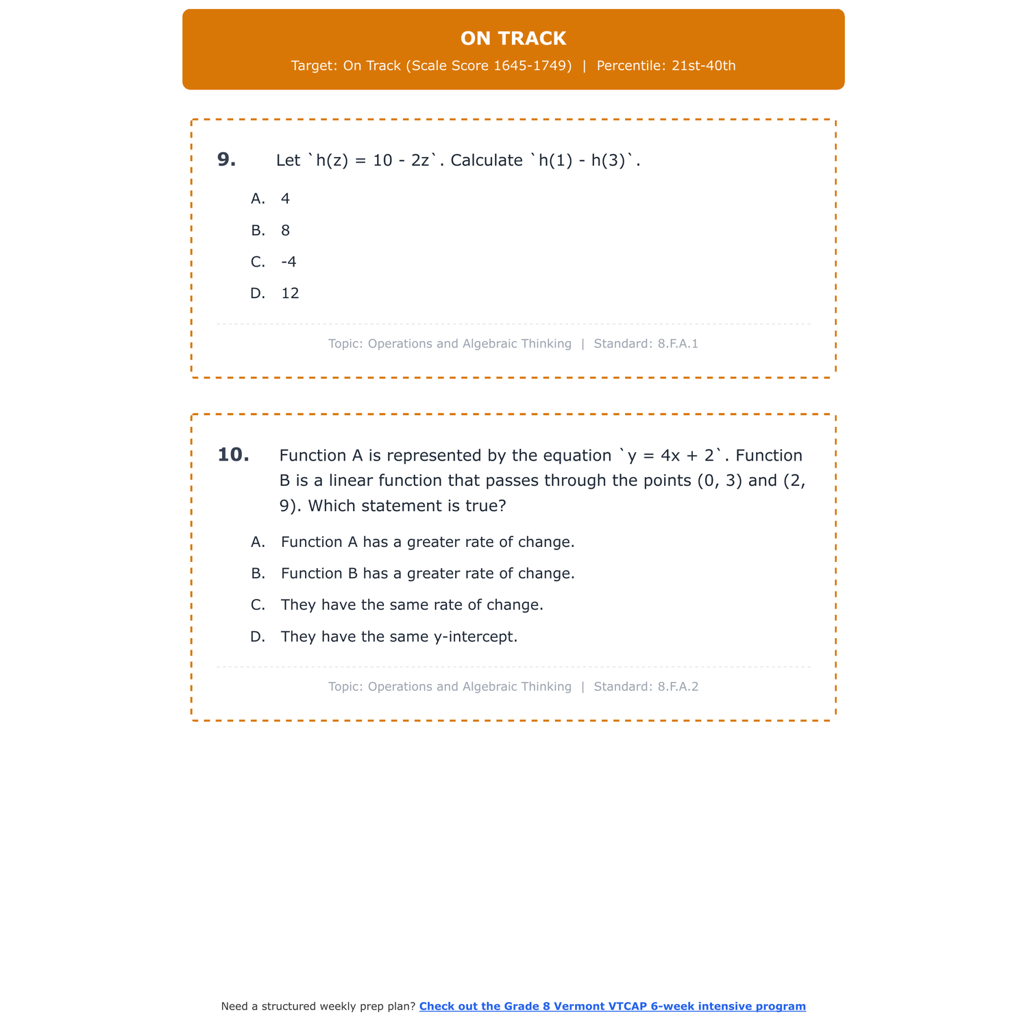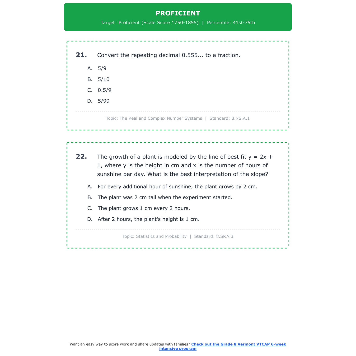 [Grade 8] Vermont VTCAP Math | 6-Week Test Prep Program | Scale Score 1500-2000