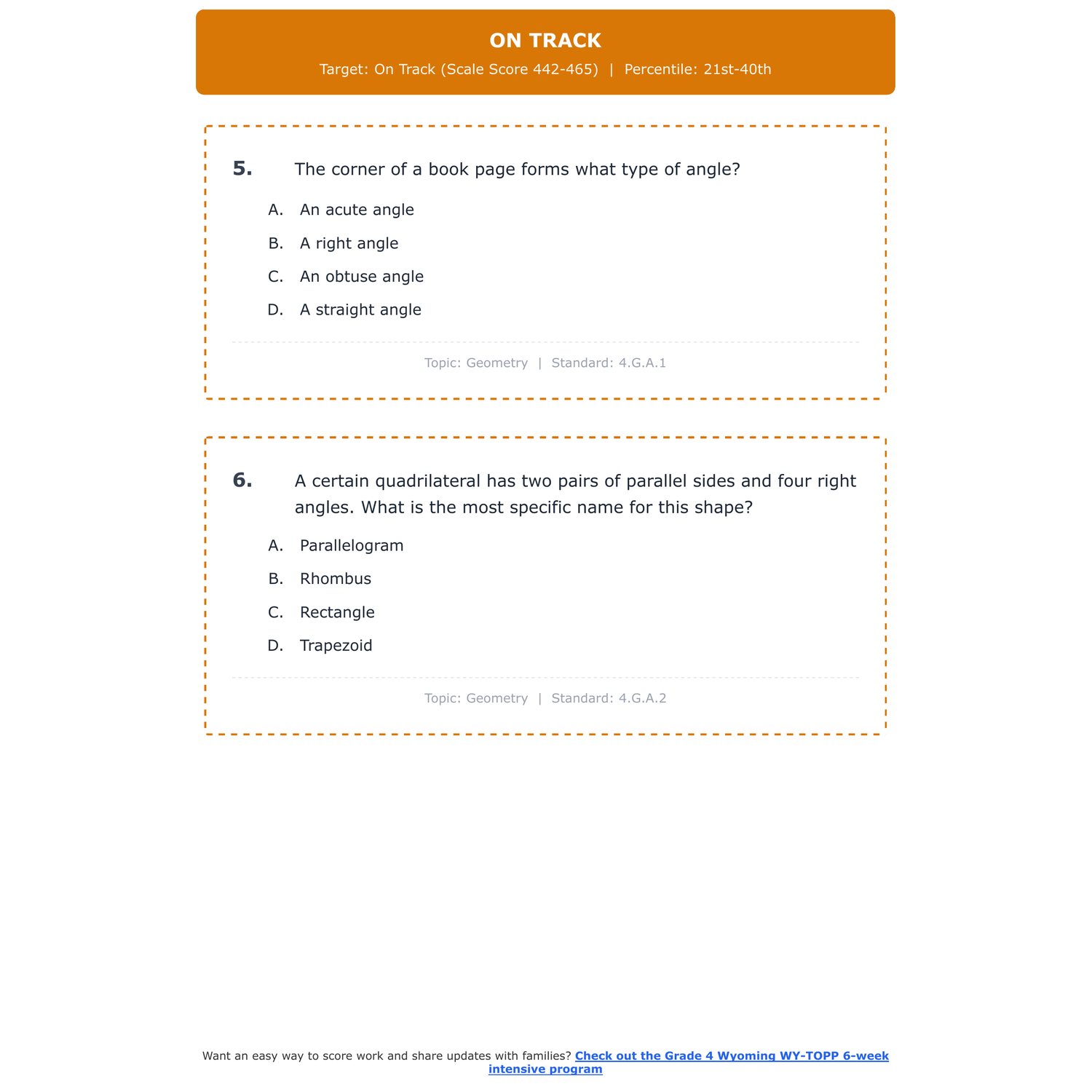 [Grade 4] Wyoming WY-TOPP Math | 6-Week Test Prep Program | Scale Score 200-825